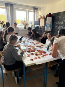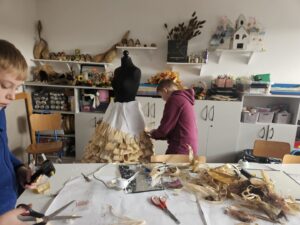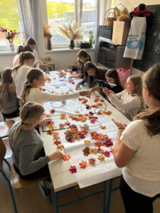 Učiteljice Kristina Husarek i Ivanka Švaljek marljivo su sakupljale lišće kojim je ukrašena sljedeća lutka, dok je učiteljica Vesna Horvat prikupila suho cvijeće koje krasi još jednu od naših Jesenčica.