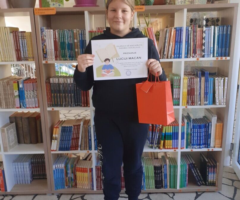 Lucia Macan, učenica 5.a razreda pobjednica je Nacionalnog kviza za poticanje čitanja u našoj školi. Uz malo sreće, Lucia ima priliku osvojiti glavnu ili utješnu nagradu na završnom izvlačenju koje će biti održano 14. studenoga u NSK u Zagrebu.