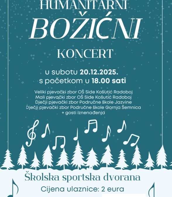 Osnovna škola Side Košutić Radoboj poziva vas na humanitarni koncert čiji je cilj prikupiti sredstva za Udrugu OSIT, udrugu koja svojim djelovanjem pruža podršku osobama s intelektualnim teškoćama i njihovim obiteljima.