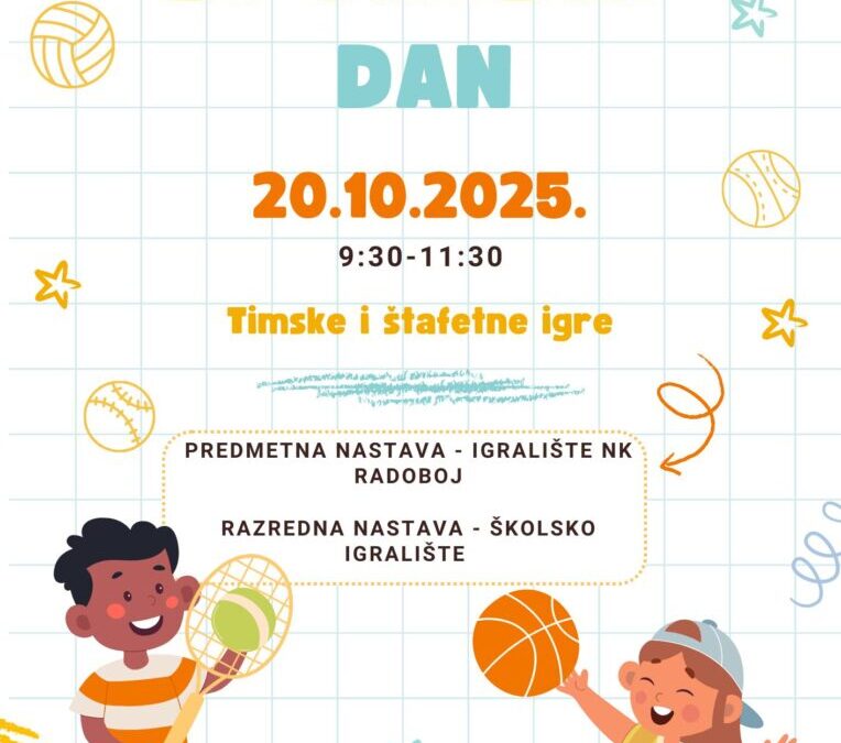 Završnica obilježavanja Dana škole očekuje nas u ponedjeljak, 20.10.2025. kada za sve učenike organiziramo integrirani sportski dan.