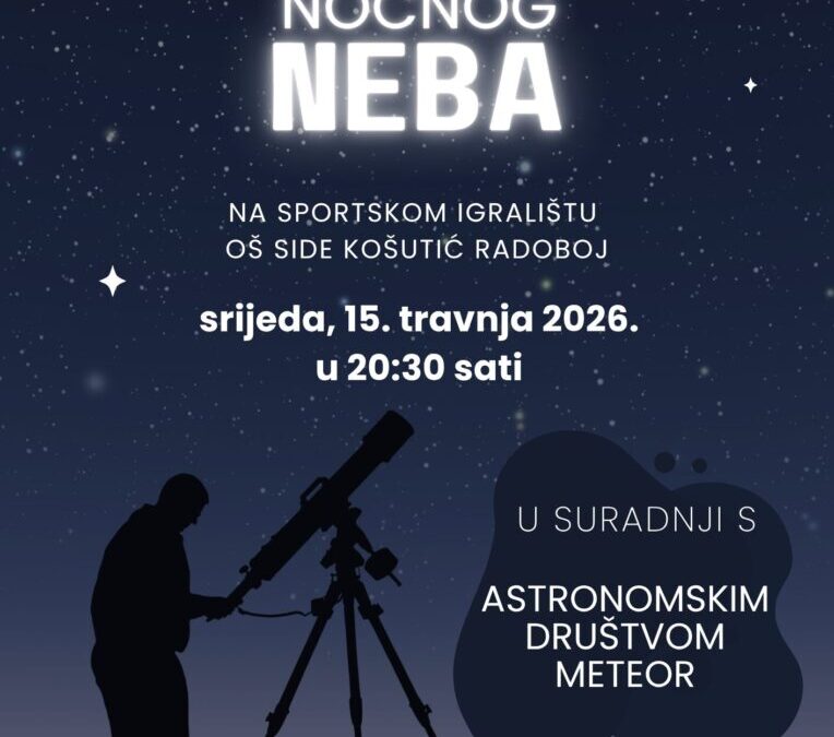 pozivamo vas na promatranje noćnog neba u organizaciji Astronomskog društva Meteor koje će se održati ove srijede, 15. travnja 2026., s početkom u 20:30 sati na sportskom igralištu OŠ Side Košutić Radoboj.